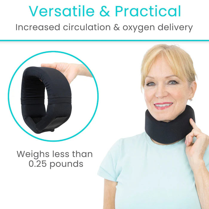 Enjoy all-day comfort with our neck brace made from soft, cushioned foam. The brace is wrapped in a blend of nylon and spandex, keeping you cool and comfortable. The foam interior offers superior cushioning, ensuring your neck receives the gentle support it needs