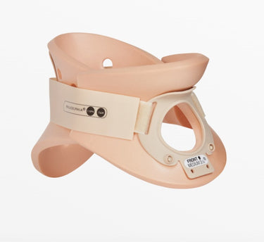 The Philadelphia Tracheatomy Collar is a hospital and rehabilitation collar that is designed to maintain neutral alignment of the cervical spine after injury to the neck. The collar contains a large trachea opening allows carotid pulse monitoring and emergency tracheotomies.