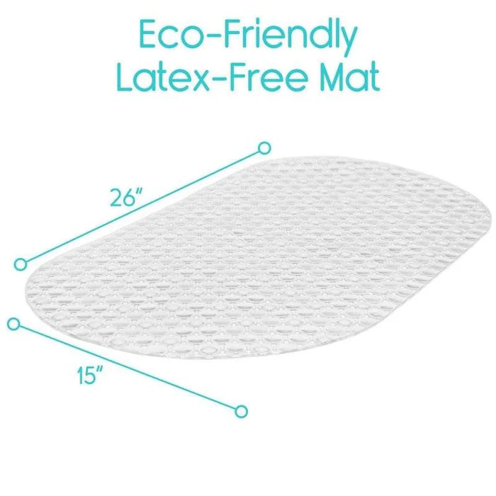 Generously sized at 26” by 15”, the oval mat provides exceptional non-slip coverage