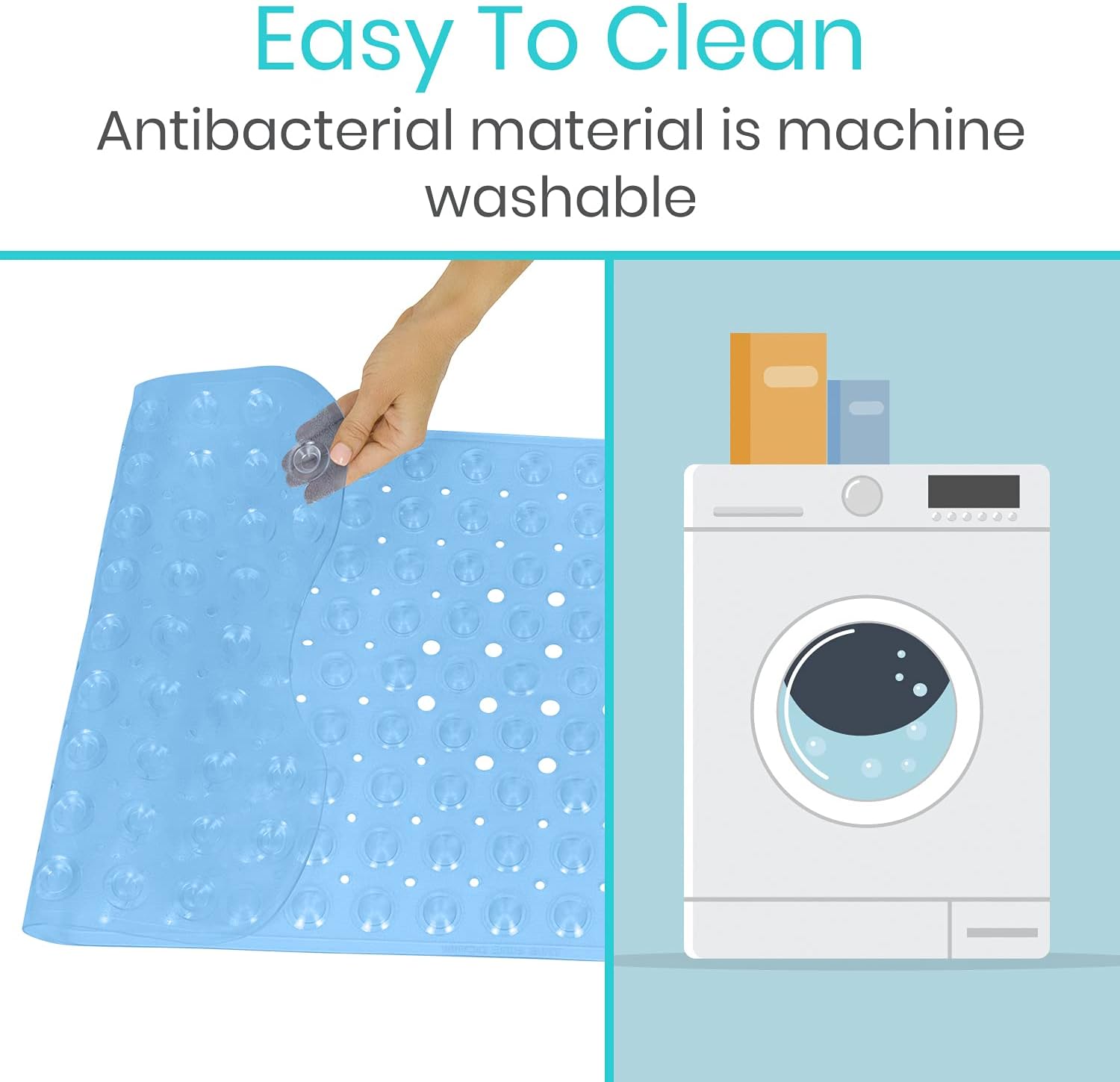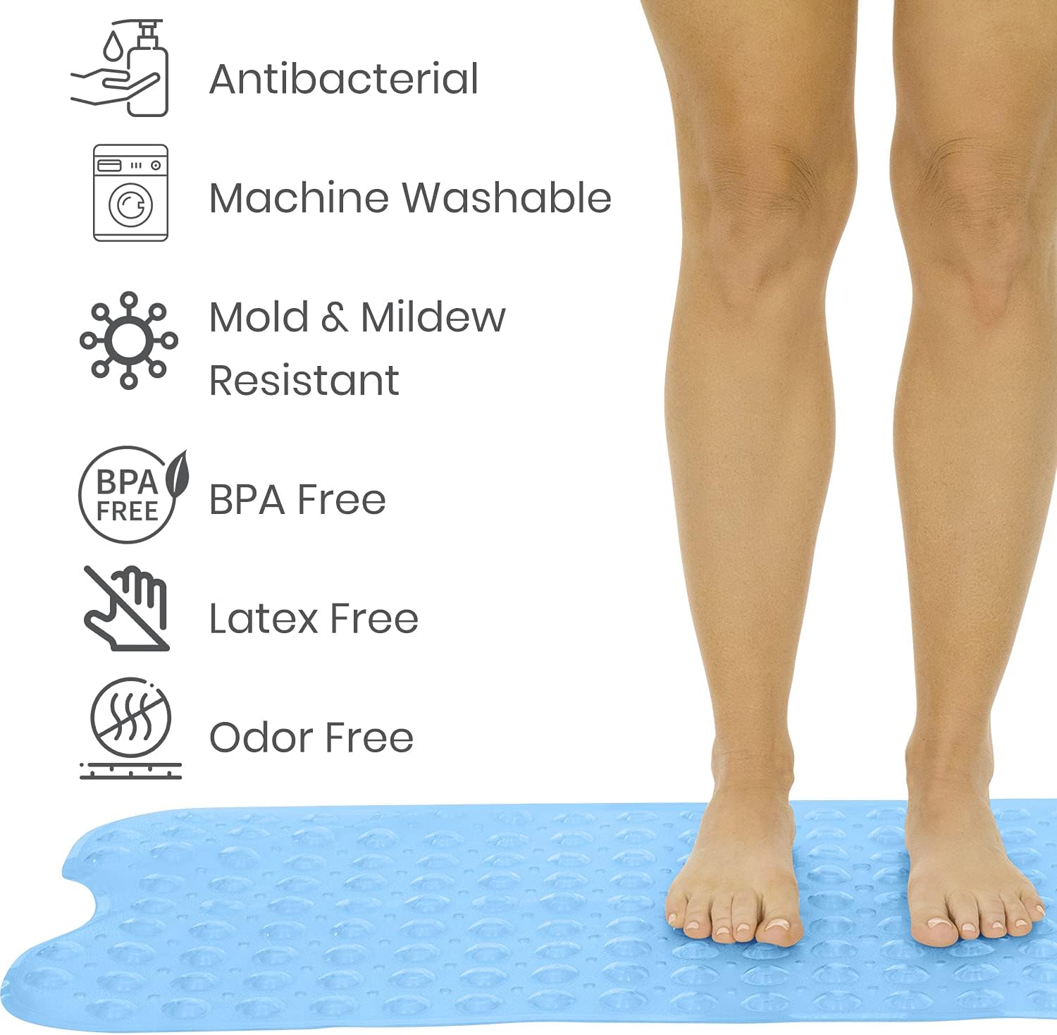 Latex-free, the durable pvc bath mat is antimicrobial to resist mold and mildew