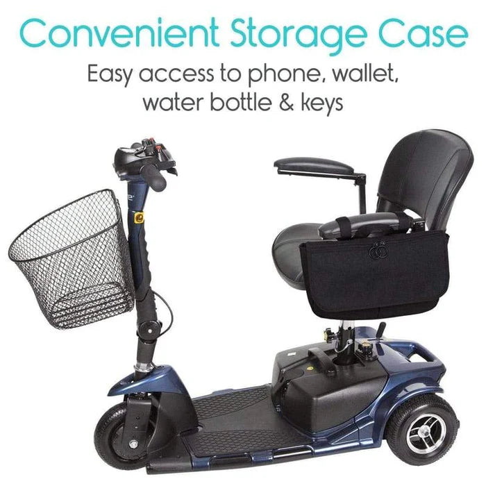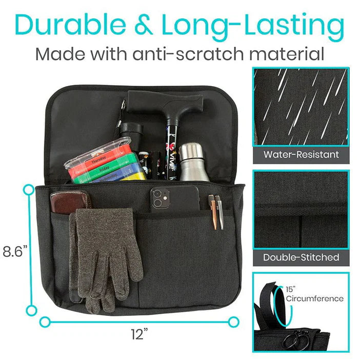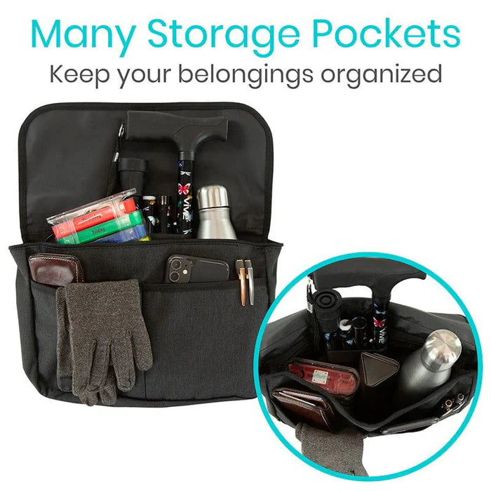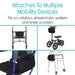 Adjustable fastener straps securely attaches the side hanging bag to wheelchairs, transport chairs, scooters, rollators and walkers